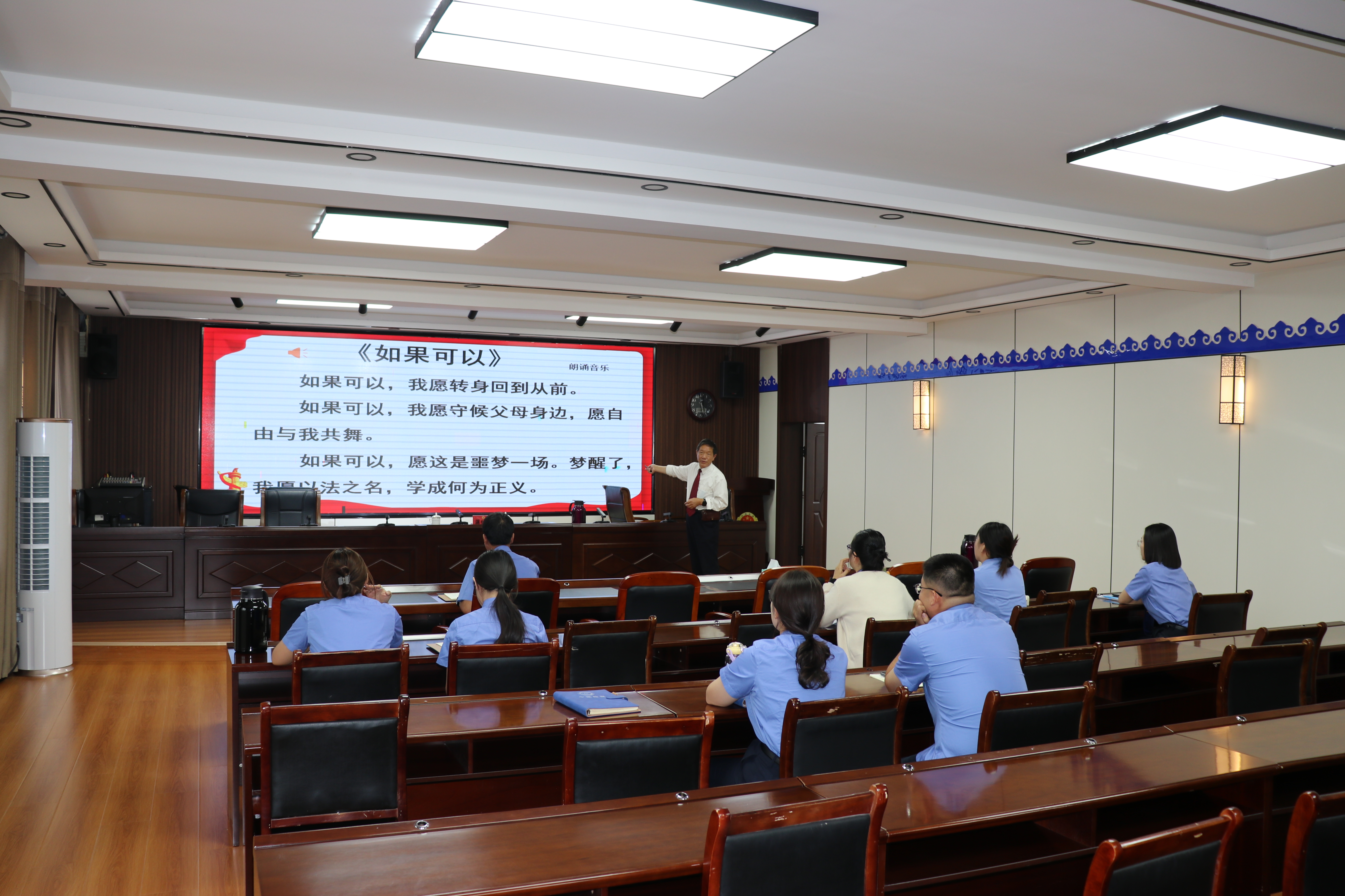 为深入贯彻习近平法治思想,创新法治教育形式,提升法治教育效果,9月22日上午,乌拉特中旗人民检察院特别邀请威宁县检察院蒋仕祥来院开展法治音乐课交流学习座谈会,院党组成员、政治部主任杜振军主持会议。本次座谈会聚焦法治音乐课的实践与探索,旨在为检察人员提供新思路、新方法,进一步推动法治教育工作向纵深发展。为后续两天乌拉特中旗人民检察院和贵州省毕节市威宁县人民检察院联合开展的进校园法治宣讲活动打好基础。