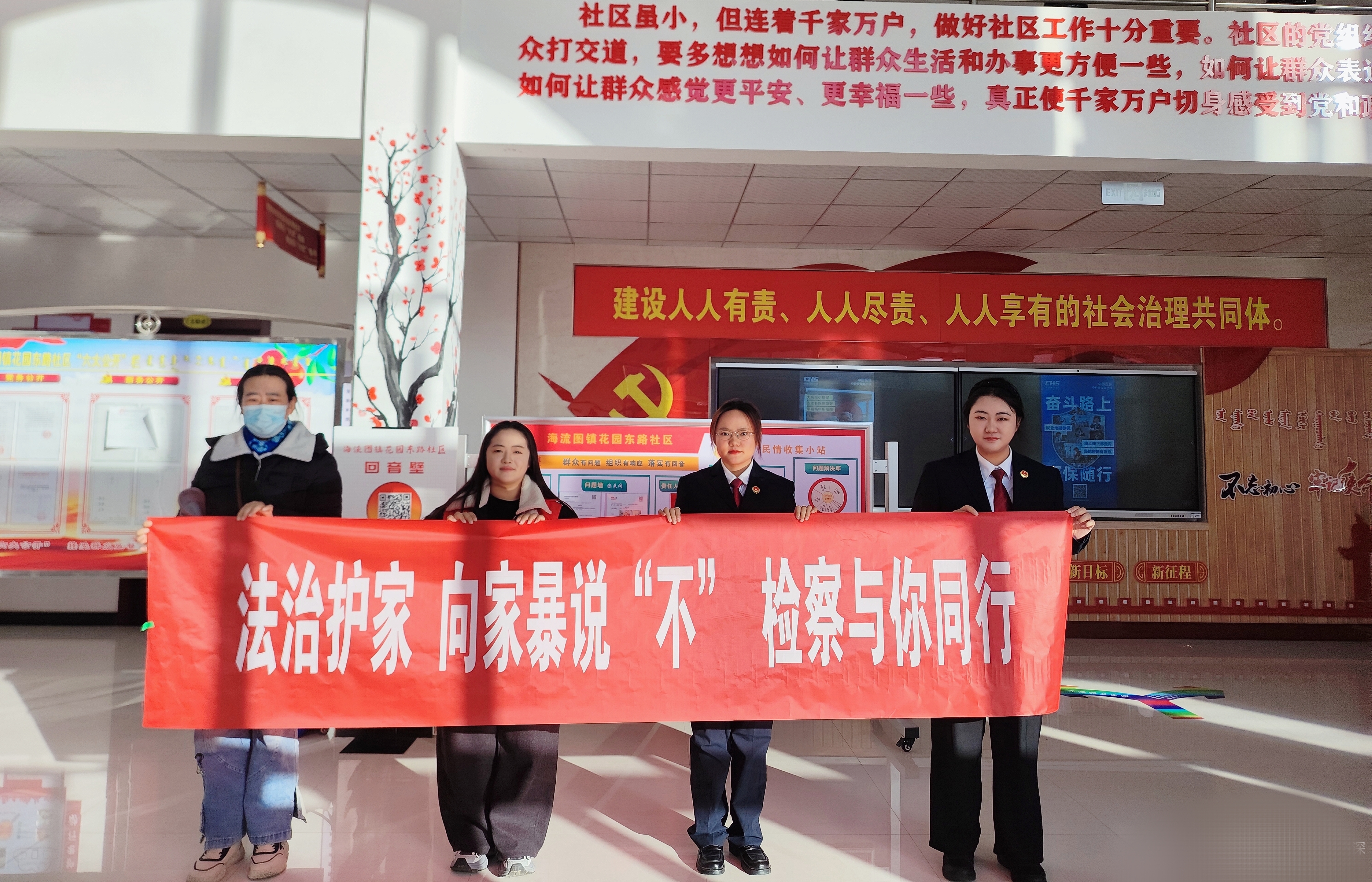 岁暮天寒,检爱同行。11月27日,乌拉特中旗人民检察院联合旗妇联来到花园东路社区,值“国际反家庭暴力日”之际,开展“法治护家,向家暴说不”主题法治宣传活动。