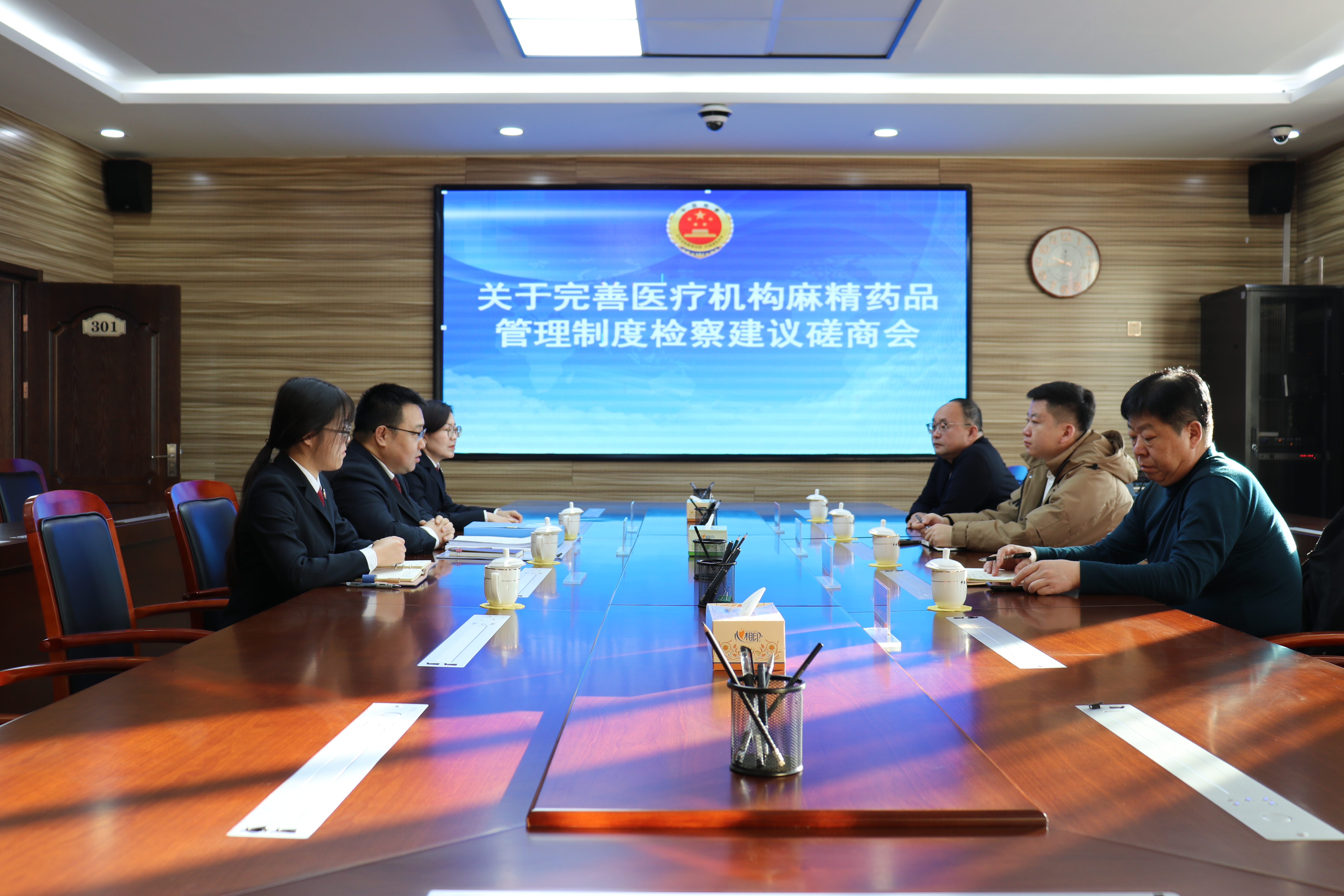 为严厉打击麻精药品涉毒犯罪,堵塞医疗机构麻精药品管理漏洞,1月16日,乌拉特中旗人民检察院针对办理的祁某某贩卖毒品(盐酸吗啡片)案件中发现的问题,组织旗公安局、旗卫生健康委员会及涉案医疗机构召开检察建议磋商会,特邀人民监督员全程监督见证。